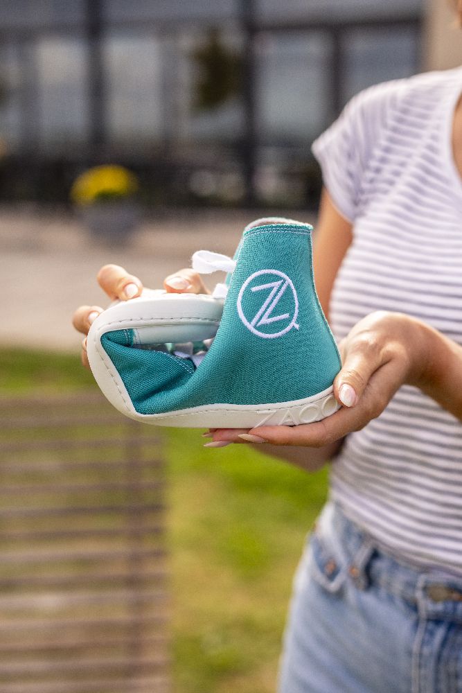 Hecho de mezclilla azul turquesa, no solo ofrece un diseño fresco y llamativo, sino también todas las ventajas de un zapato descalzo. Con la gorra de los pies blancos y los cordones blancos, se ven deportivos y al mismo tiempo modernos.