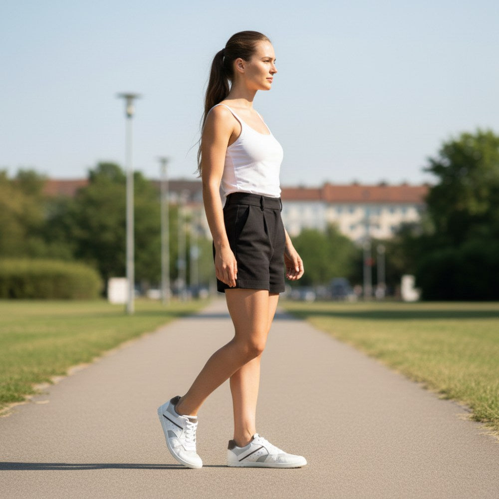 - La suela de goma con tacón cero, aliviando así la columna vertebral y protegiendo las articulaciones, apoya la postura natural