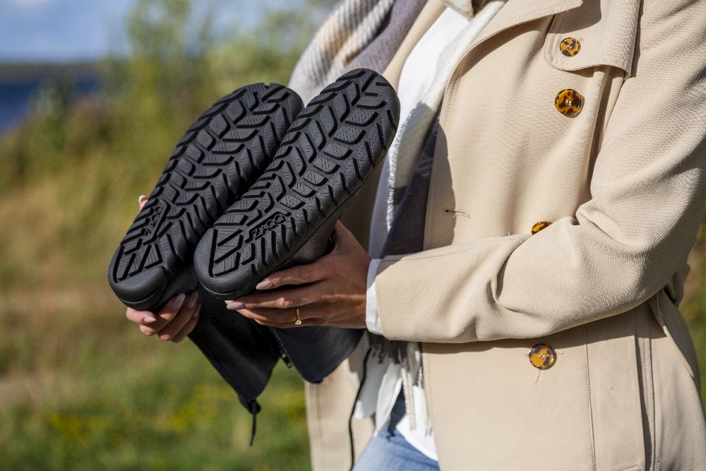 - La suela de goma con tacón cero, aliviando así la columna vertebral y protegiendo las articulaciones, apoya la postura natural