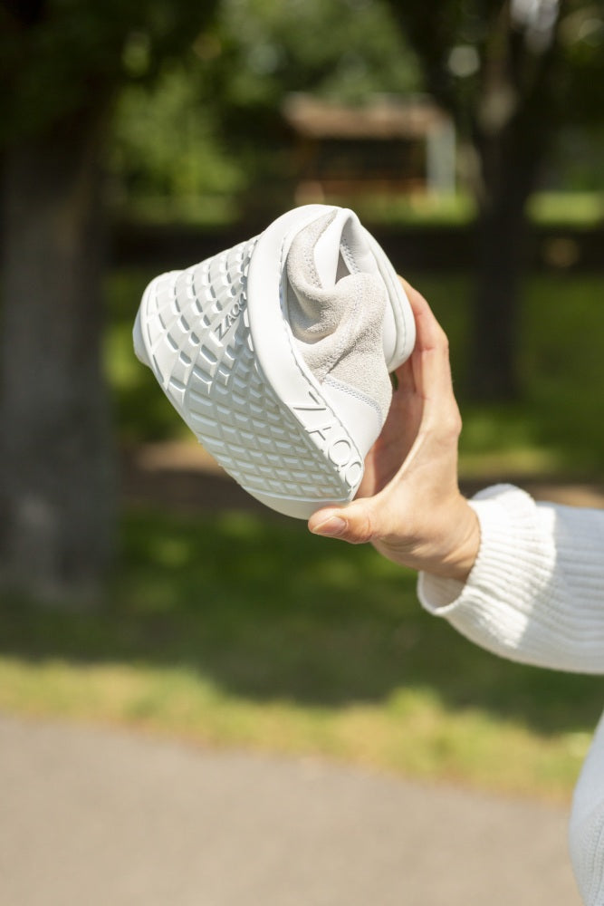Su nuevo zapato descalzo consta de estos materiales de alta calidad. ZAQQ Iviq White: