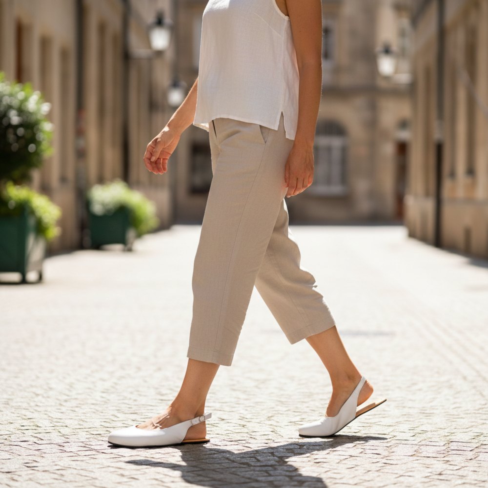 Pinq White es una elegante mezcla de bailarina y sandalias.
