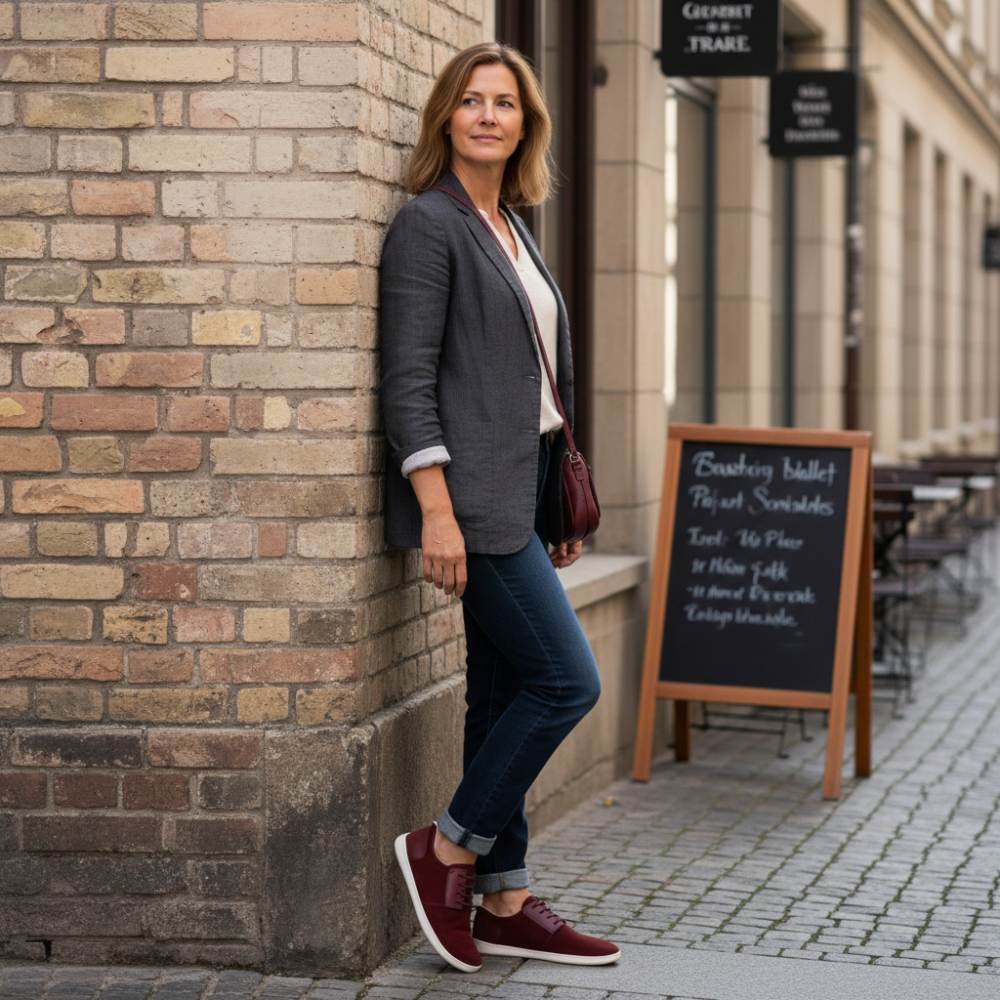 PIQUANT Burdeos simplemente se ve elegante con su cuero de gamuza rojo oscuro. Debido al contraste con la suela blanca, el zapato descalzo recibe una patada fresca moderna. Es por eso que puedes combinar esta zapatilla maravillosamente. Él va a atuendos más elegantes y pantalones de trote, tal como lo necesita.
