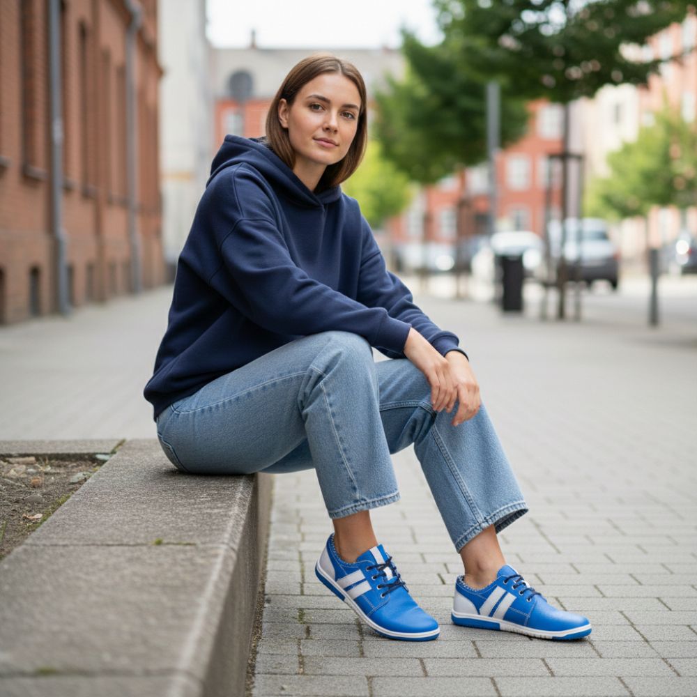 Por estas razones, sus nuevos zapatos descalzos Qapetown Blue son particularmente saludables y cómodos: