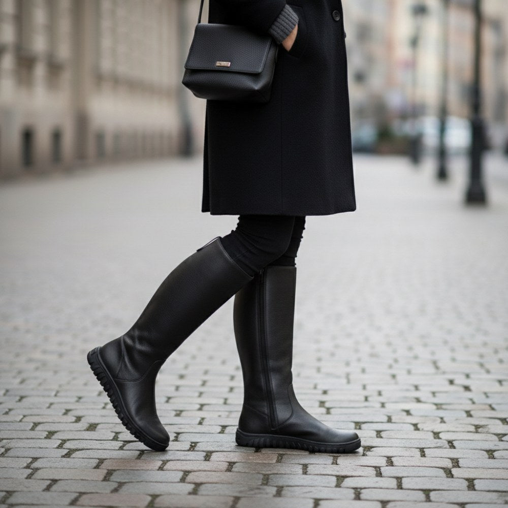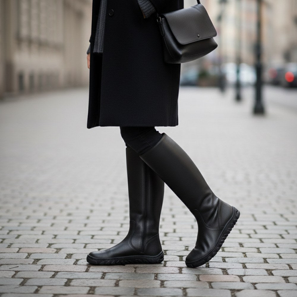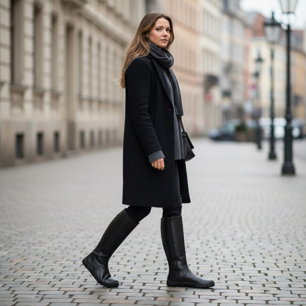 Estas botas simples están hechas de cuero Nappa negro premium, que no solo se ve de alta calidad, sino que también garantiza una larga durabilidad. A pesar del eje alto, Qazz Black es fácil y te da la sensación de libertad con cada paso.
