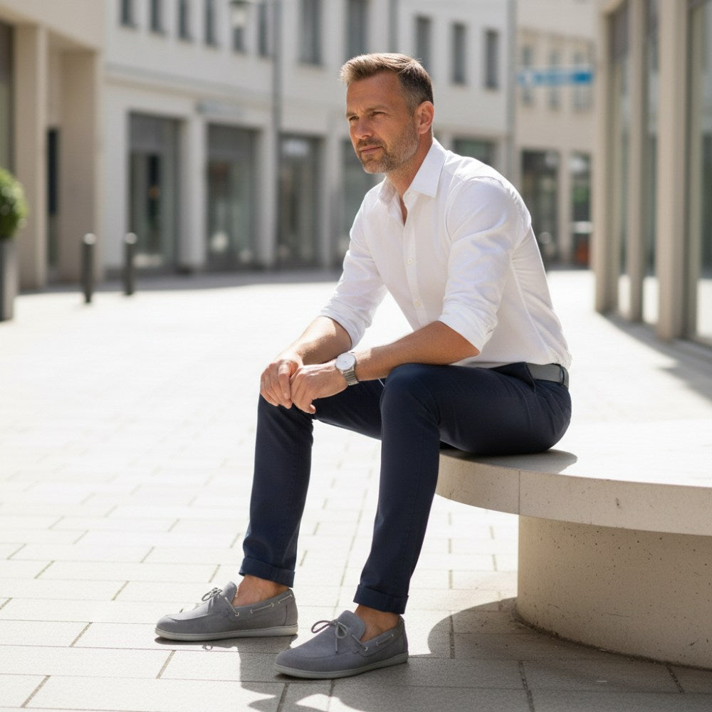 Ya sea para una tarde relajante en el lago, un paseo por la ciudad o incluso en la oficina: los zapatos de barco gris Qea Velor se ajustan a casi todas las ocasiones.