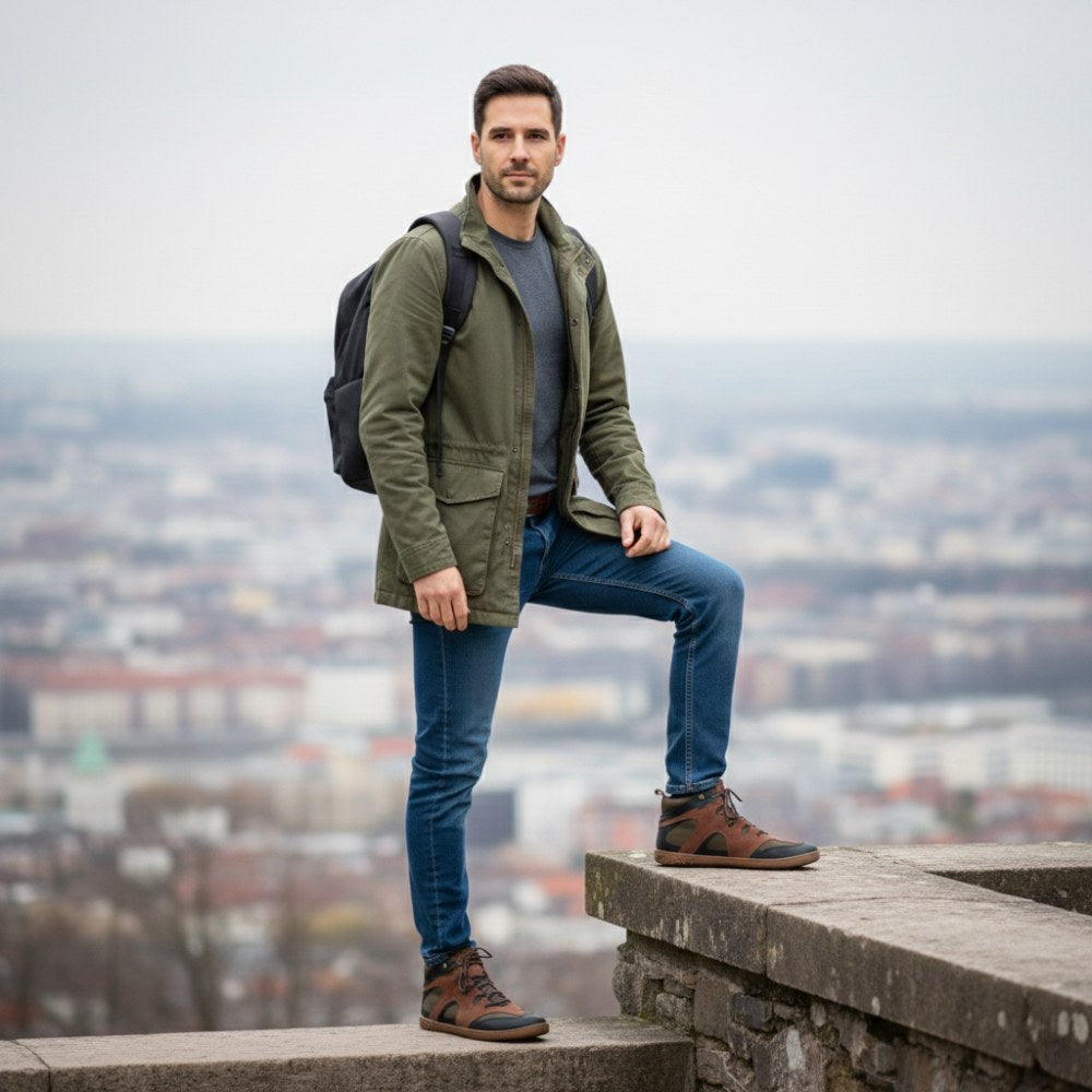 Qinsley Dark Brown es el zapato medio descalzo que te acompaña en todas las aventuras al aire libre, pero también corta una buena figura cuando camina por la ciudad. Los materiales de alta calidad hacen que nuestro Qinsley sea absolutamente robusto y duradero, por lo que aún así se divertirá con este zapato descalzo después de años de uso.