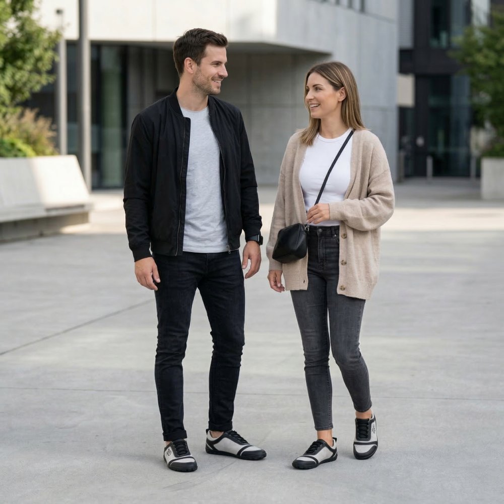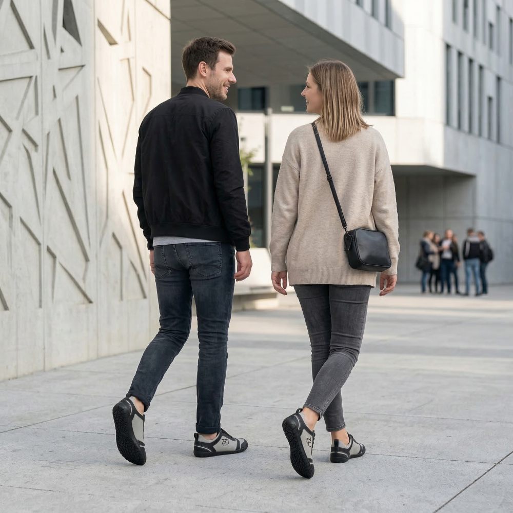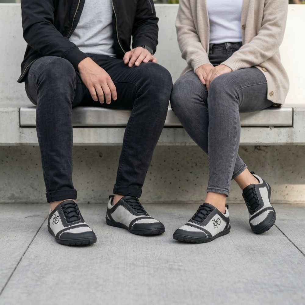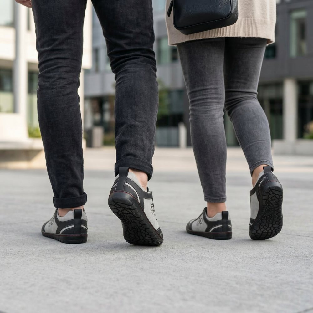 Nuestro Sqill es perfecto como zapatilla de carrera descalza porque es súper ligera y con su combinación de microfibra vegana y forro interno delgado es particularmente transpirable. El corte asimétrico de este zapato descalzo lo convierte en un sutil cementer de ojos. Con sus colores simples hechos de negro y gris claro, no solo se ve bien en los deportes, sino también como una zapatilla de deporte en la vida cotidiana.